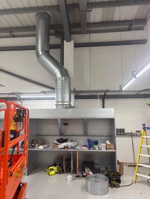 We installed a large extraction hood and ducting system (11 metres long by 4 metres wide) as a local extract system for a work area, helping create a safer and cleaner environment.